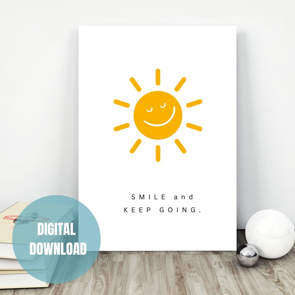 Introducing our Smiley Sun Art Motivation piece—a delightful and uplifting artwork that radiates positivity and motivation! This charming design features a cheerful smiling sun, surrounded by vibrant colors and inspiring typography. Hang it in your space to instantly brighten your mood and create an atmosphere of joy and motivation.