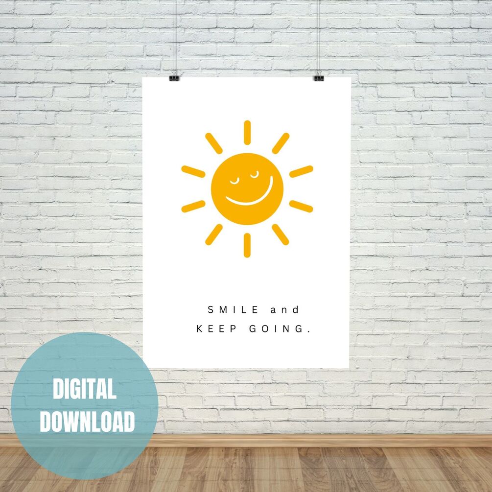 Smiley Sun - Digital Wall Art, Home Decor, Gifts - Printable in 5 Scalable sizes
